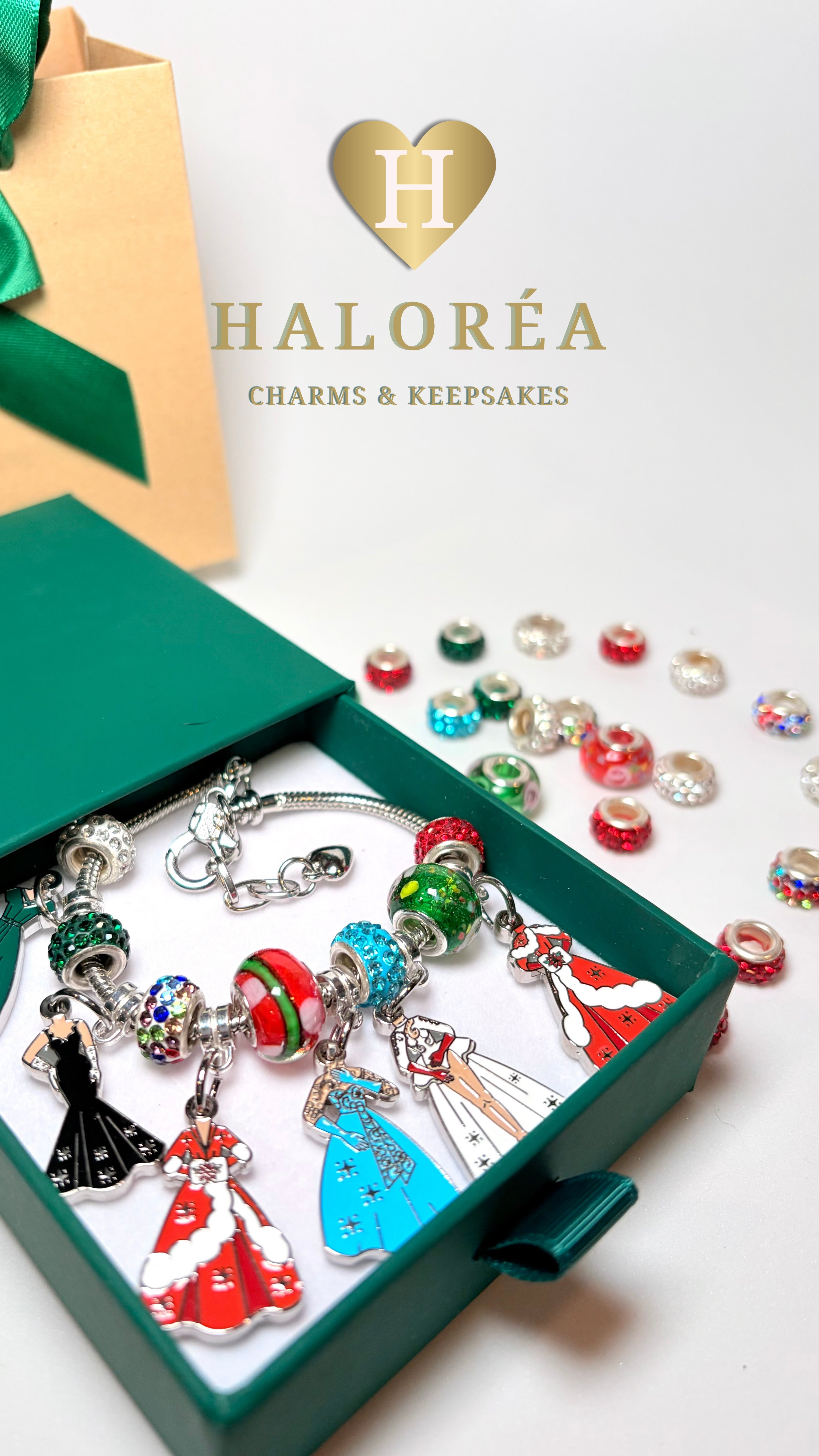 🎁 Signature Charms — Complete your design with timeless pieces from A Classic Christmas Charm Collection, including gown-inspired charms that honor the glamour of the 1950s holiday film era.