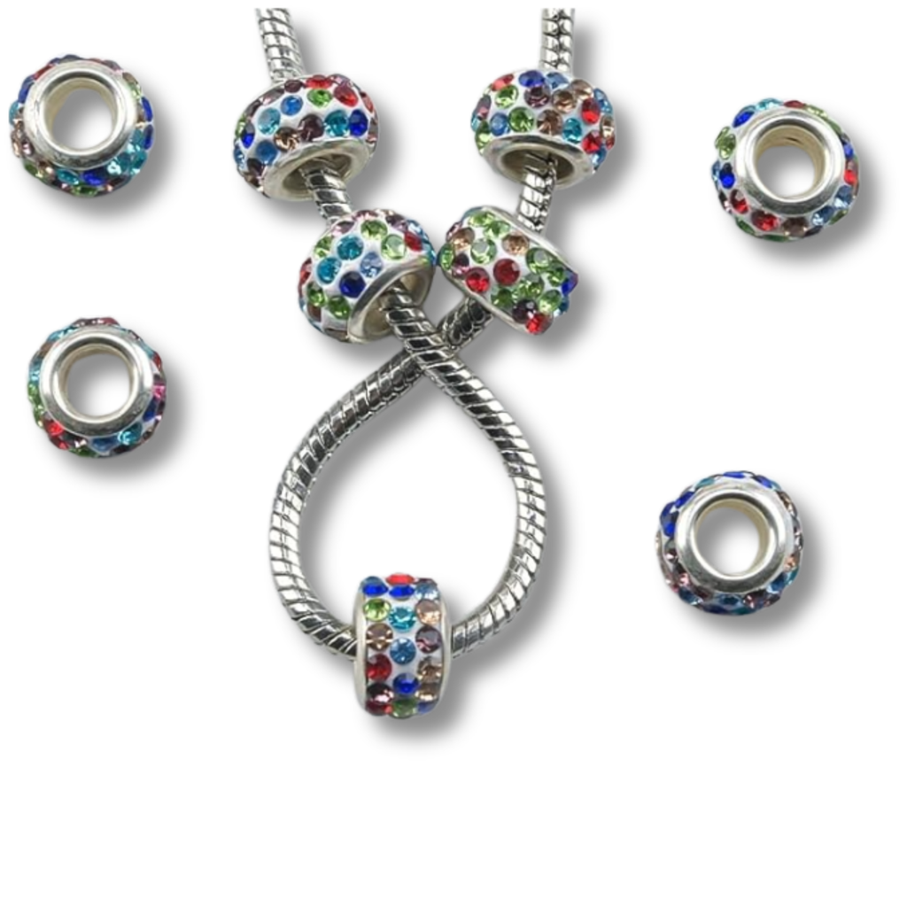 💎 Rhinestone Spacer Beads — Add shimmer and color with dazzling crystal-accented beads in festive hues like ruby red, emerald green, sapphire blue, and turquoise.