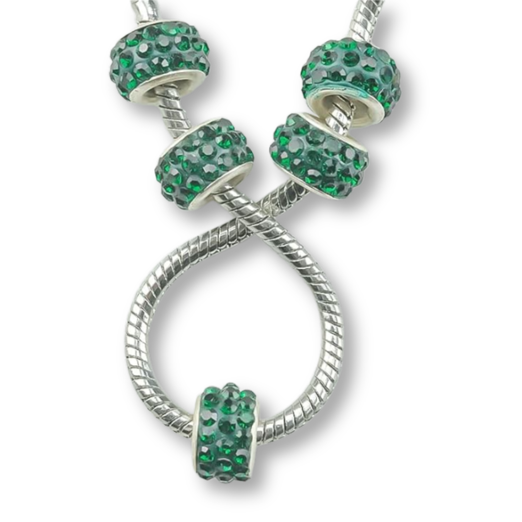 Select your choice of rhinestone spacer beads, European glass beads, and holiday charms