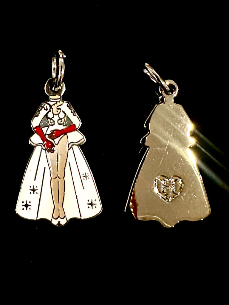 Handcrafted in fine metal and finished with glossy enamel, The Mandy Charm captures the movement, flounce, and theatrical flair of a classic stage number — ruffles, rhythm, and pure holiday delight. It’s the perfect companion to your other gown charms, adding a little “ta-da!” to your bracelet or display.